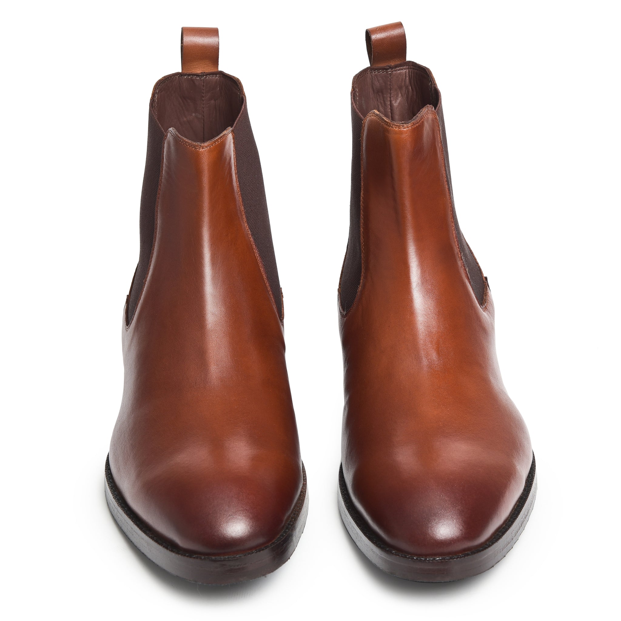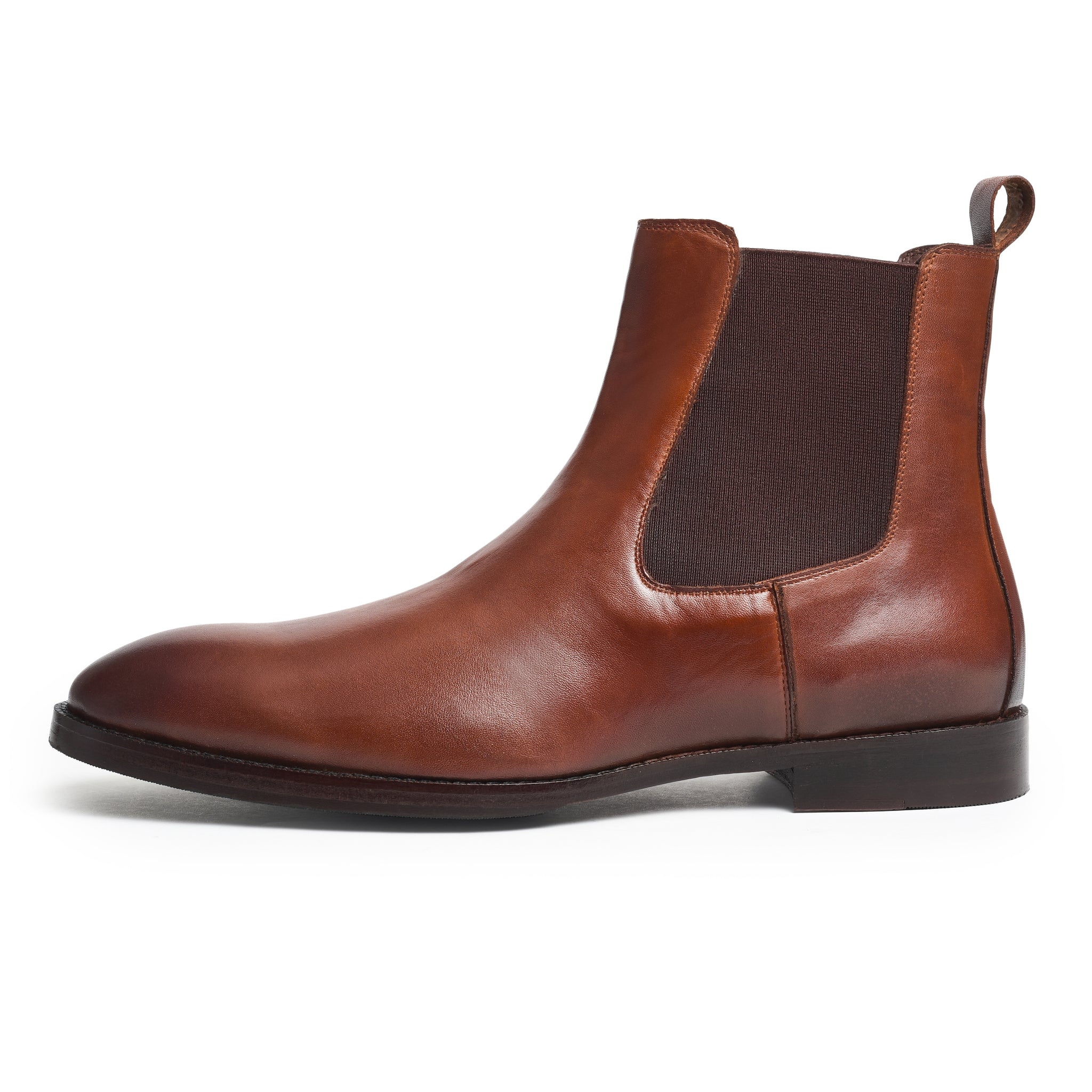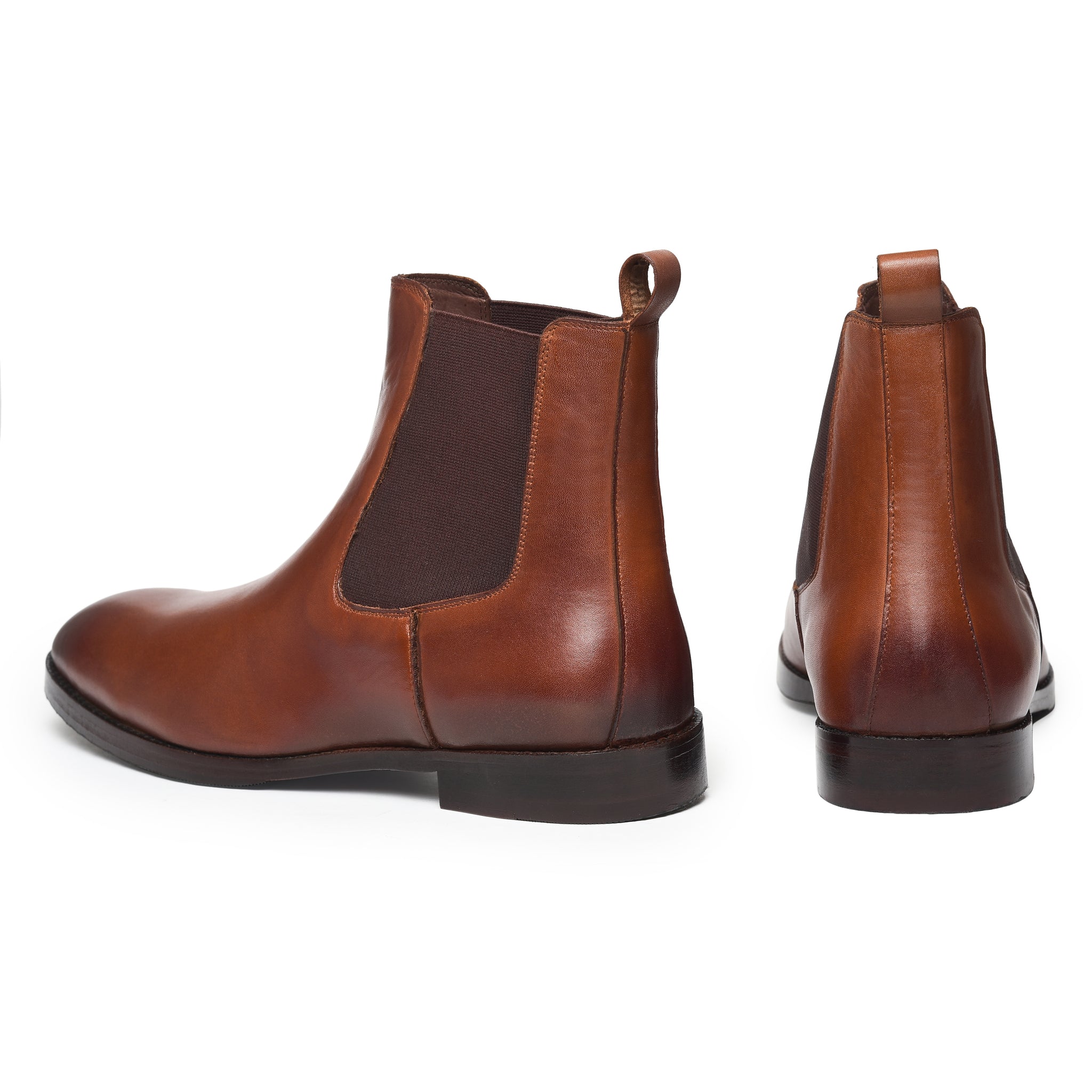 Crafted from smooth tan leather with a warm, versatile tone, this Chelsea boot brings effortless sophistication to any wardrobe. Stretch side panels provide easy slip-on comfort, while the streamlined silhouette keeps the look sharp and modern. A cushioned insole supports all-day wear, and the sturdy outsole ensures reliable grip and durability. Perfect for both tailored outfits and relaxed smart-casual looks, this boot is a refined balance of timeless style, practical comfort, and dependable craftsmanship for everyday confidence.