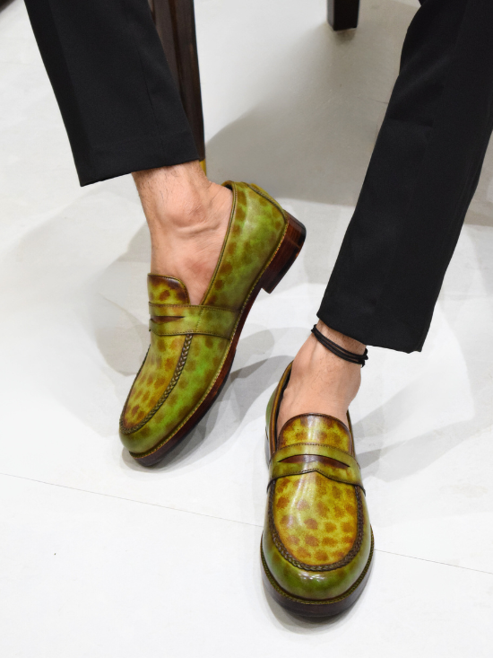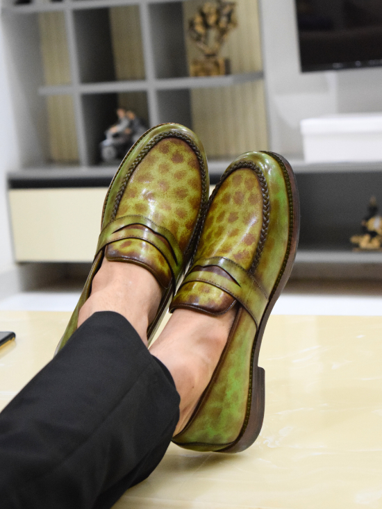 If you’ve spent weeks looking for an unusual pair of shoes to adorn your feet, your search ends here. These green Driver Loafers, which sport a tint of dark brown, with their intricate detailing and leather-strip-on-top design are the ultimate footwear to compliment your next out-of-the-box appearance. The wide width at the toe and ultra-comfortable leather-cushioned insole make sure you feel at ease even if you have to wear them for hours. Plus, the rubber patch on the sole ensures you don’t slip at even the slightest of the sprint. Combining durability and style, these museum-calf finish shoes are worth every dime you spend on them!