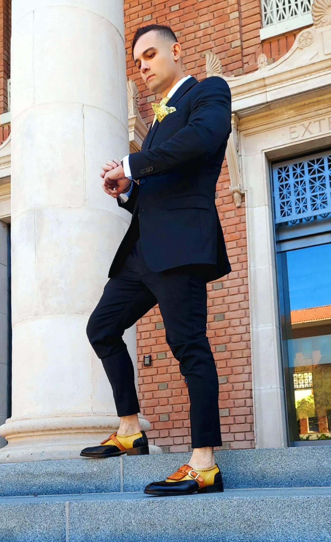 The perfect shoes when it comes to formal meetings and office wear, these Tan & Black Wingtip Kiltie Monk Straps are a class above. These hand-painted shoes for men are crafted with the finest Italian leather upper for a seamless finish. The shoes have a stylish monk strap golden closure and a fringe on the upper side of the shoes that lets you make a style statement like no other shoe. A modern representation of classic brogues, these can also be worn as wedding shoes.