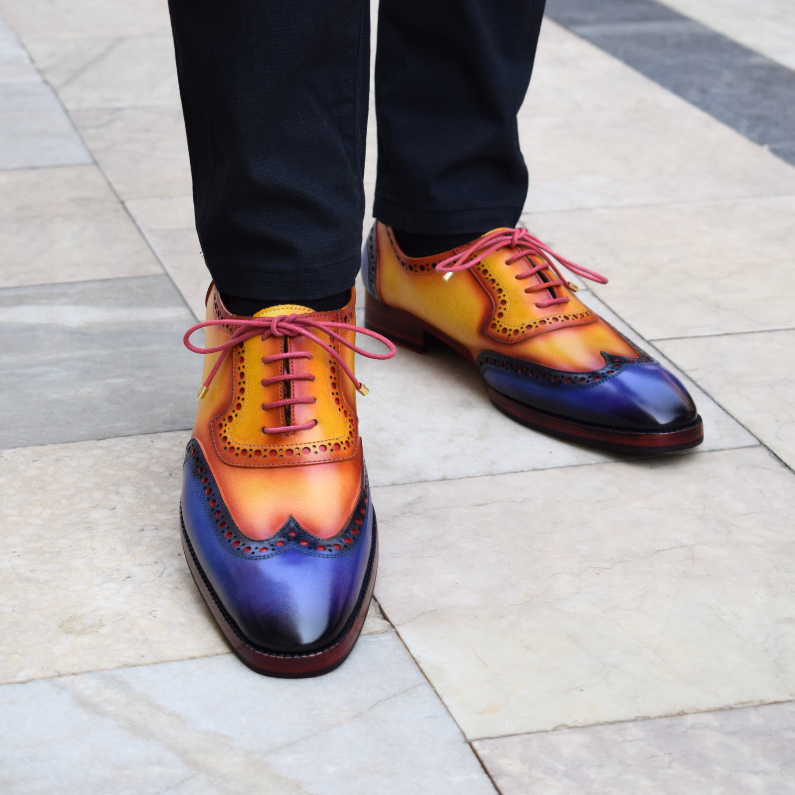 The Wingtip Brogue is the perfect blend of comfort and sophistication. Made from 100% calfskin crust leather, this classic brogue shoe has a handcrafted design that will provide you with years of wear. The tan and navy color combination pair perfectly with trousers or jeans for a look that's both classic and timeless.