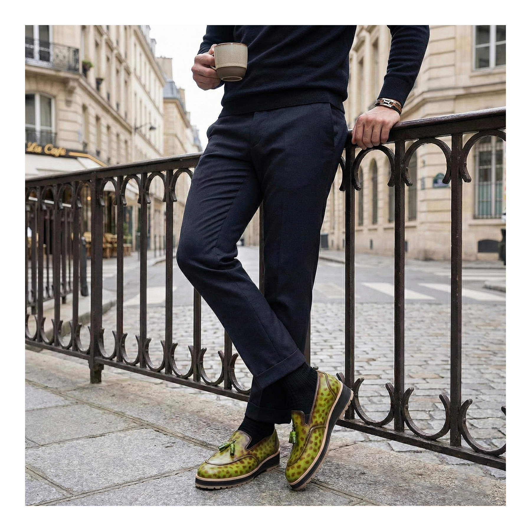 Looking for something chic and comfy? Try these Green Tassel Loafers, and thank us later! Built by some of the finest craftsmen, these loafers have full-grain leather uppers, along with pure hand-built Eva Soles. They even have a rubber protection layer beneath for firm grip and longevity and complement almost every other style. Pair them with formal or regular denim and t-shirts, wear them at the office or on a date night or a road trip, and you won’t be disappointed at all.