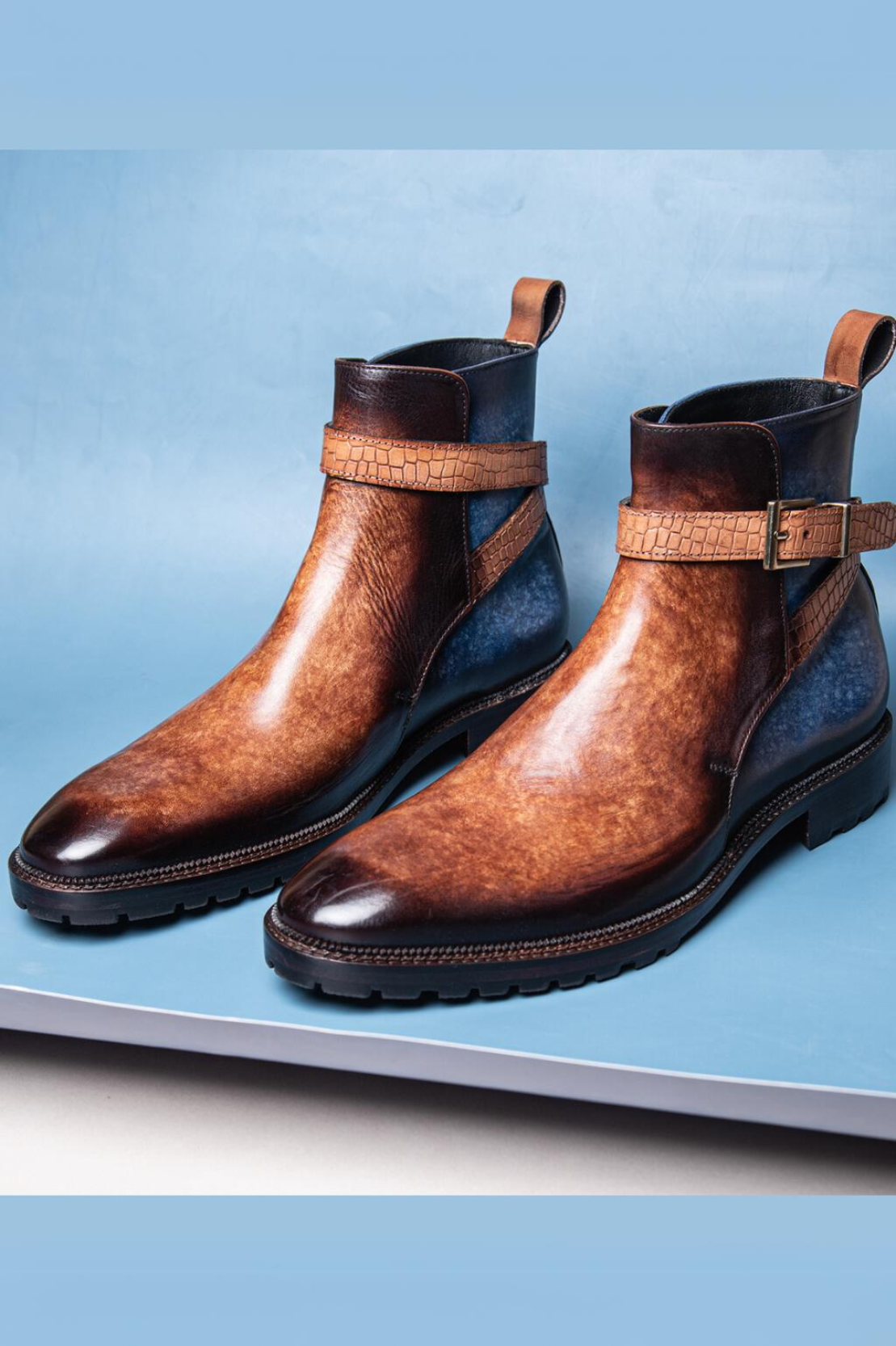 One of the most impressive pieces in Lethato’s collection, these double cross-strap boots are made entirely of high-quality materials. With Italian full-grain leather uppers and fine Argentinean commando leather soles, these Ankle Boots are crafted to reflect a unique Jodhpur royal design and style. Accompanied by a trendy metal buckle, they are a combination of authenticity and fashion. The dual-tone finish complements any formal wear for any occasion.
